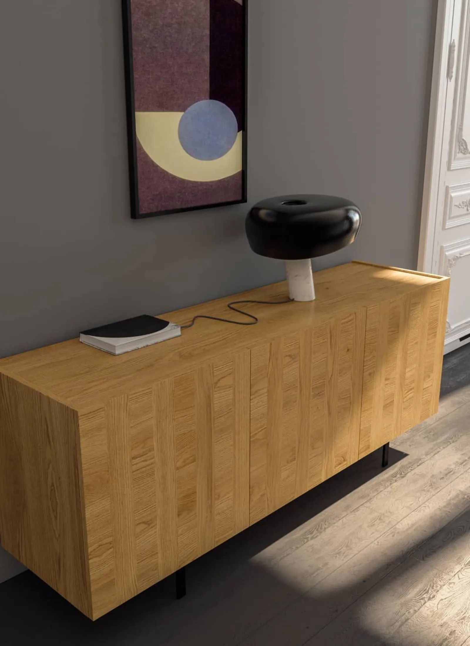 NUOVA, MINIMALE, LIBERA DA VINCOLI PRECOSTITUITI. DOGA FONDE LA RAZIONALITA’ MODERNA CON UNA DISCIPLINA DI ANTICA LAVORAZIONE DEL LEGNO, E NE DIVIENE UNA INCLINAZIONE ESTETICA. IN PARTICOLARE NELLA TEXTURE DELL’ANTA, DEFINITA DALL’ALTERNARSI IN SENSO ORIZZONTALE E VERTICALE DELLE VENATURE DEL LEGNO ROVERE.